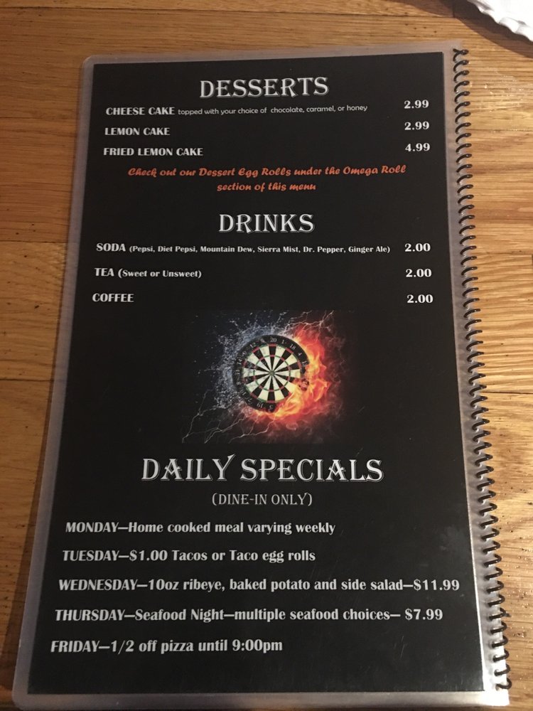 Welcome to Omega Bar and Grill in Hopewell, VA! This women-owned establishment offers a diverse menu with many vegetarian options, catering services, and a full bar. With friendly staff and a divey atmosphere, Omega is a great spot for groups or a casual night out. You can enjoy happy hour specials, delicious pizzas, ice-cold beers, and a variety of alcoholic drinks at reasonable prices. The restaurant is wheelchair accessible, has outdoor seating, and provides facilities like drive-thru, covered outdoor seating, and private dining. Customers rave about the excellent service, generous portions, and enjoyable activities like playing darts. Whether you're a local or just passing through, Omega Bar and Grill is a must-visit for great food and a good time. Visit us at 120 E City Point Rd or call (804) 452-1755 to make a reservation.